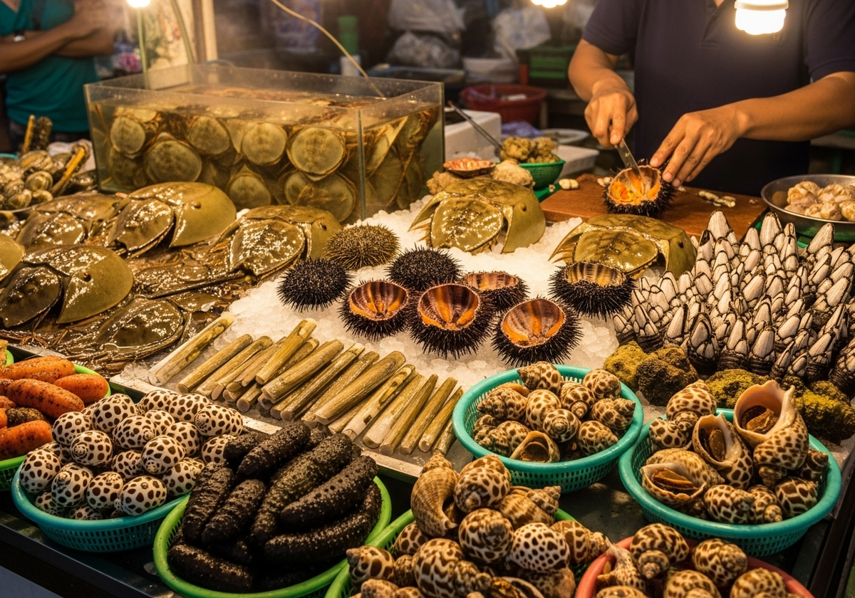 Морепродукты на Пхукете поражают своим многообразием и вкусом. Здесь можно встретить не только привычные лобстеры и креветки, но и различные морские экзоты, которые добавляют остроты к кулинарным впечатлениям. Вот лишь некоторые из них: