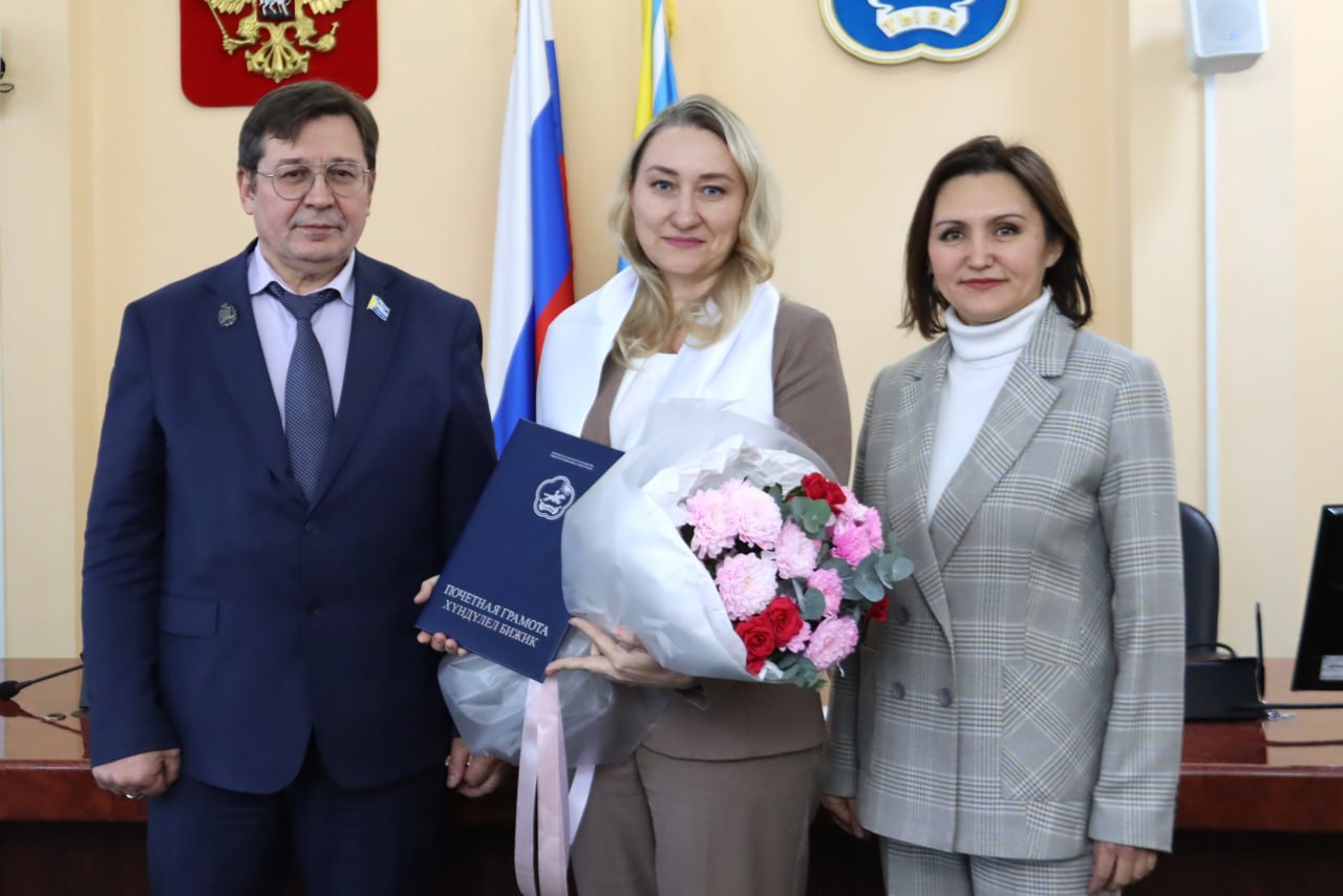 В ходе церемонии лучшие сотрудники отрасли были награждены почетными грамотами и благодарственными письмами председателя Верховного Хурала.