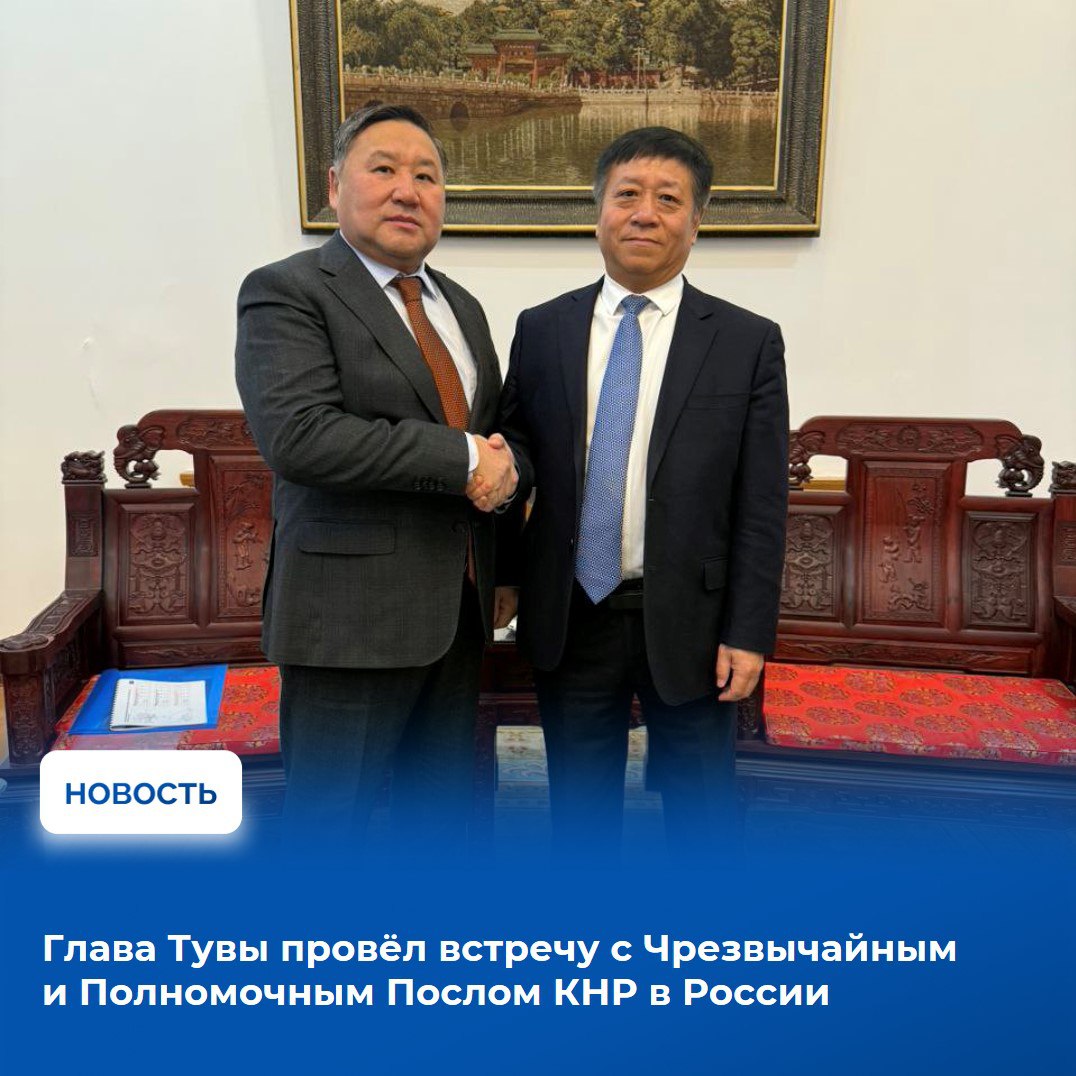 Владислав Ховалыг в ходе рабочей командировки в Москву провел встречу с Чрезвычайным и Полномочным Послом КНР в России Чжан Ханьхуэй. Стороны обсудили вопросы участия делегации из Китая в IV Международном буддийском форуме, который состоится в Туве в 2026 году. Также рассмотрели перспективы развития транспортного коридора через территорию Тувы в Монголию и Китай.