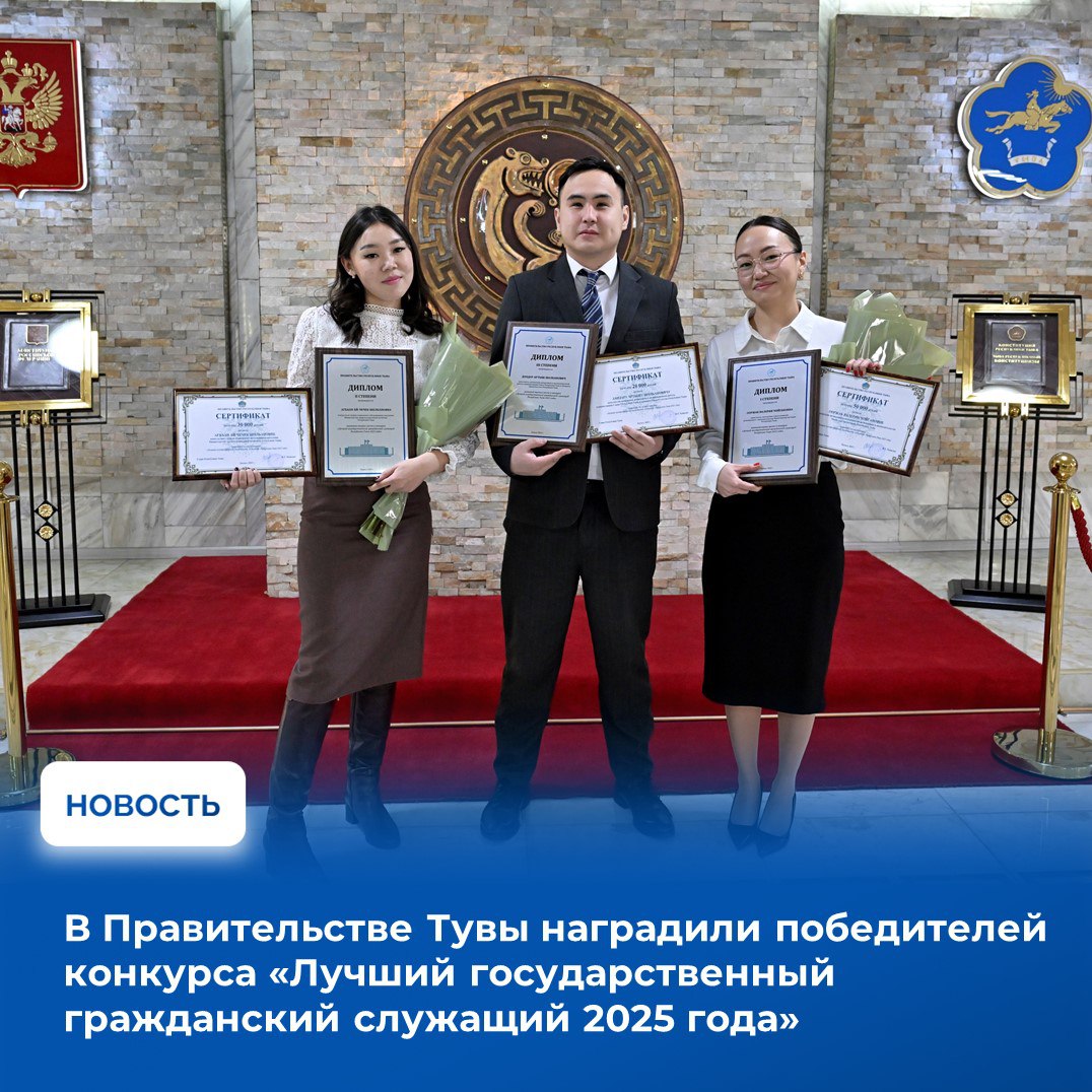 В Правительстве Тувы подвели итоги конкурса «Лучший государственный гражданский служащий Республики Тыва 2025 года». 12 финалистов представили комиссии свои проекты, содержащие рационализаторские предложения, способствующие развитию отдельных отраслей экономики региона. Награды победителям конкурса вручил руководитель Администрации Главы Республики Тыва и Аппарата Правительства Республики Тыва Юрий Ананьин.