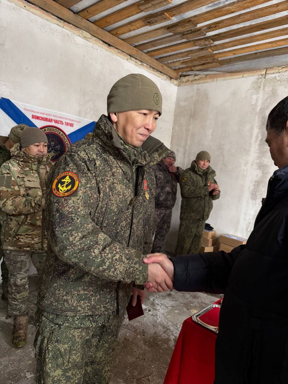 Тимур Куулар пообщался с военнослужащими, которые служат в 40-й гвардейской бригаде морской пехоты Тихоокеанского флота, в 68-м корпусе 39-й бригады Восточного военного округа и в 11-й отдельной гвардейской бригаде воздушно-десантных войск России.