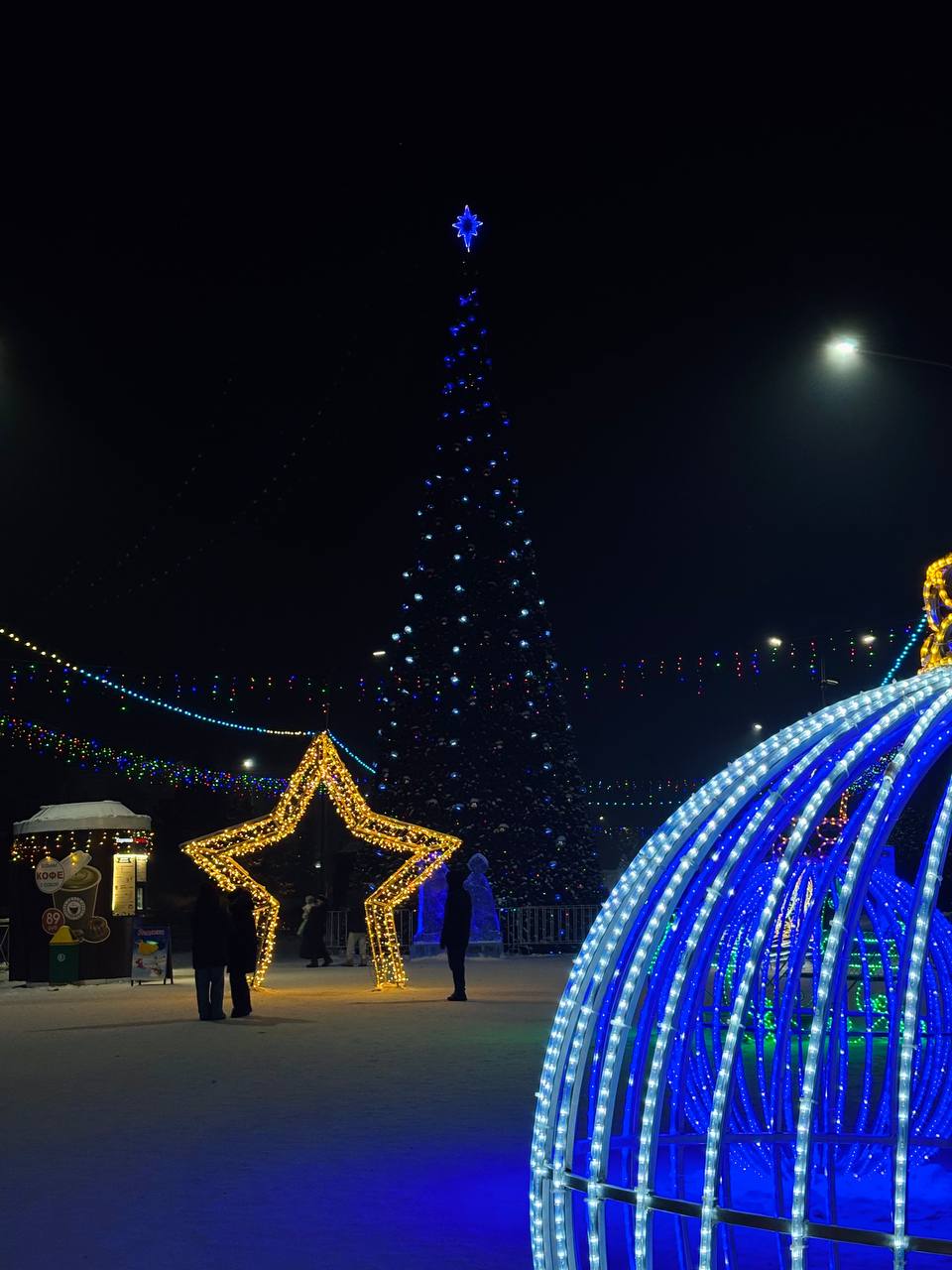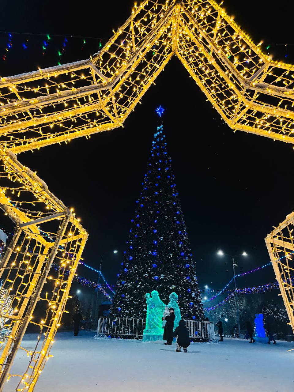 Фоторепортаж с главной ёлки республики. Жители столицы вместе с семьями катаются на катке и делают красивые кадры на фоне новогодней красавицы и разнообразной декорации игрушек.