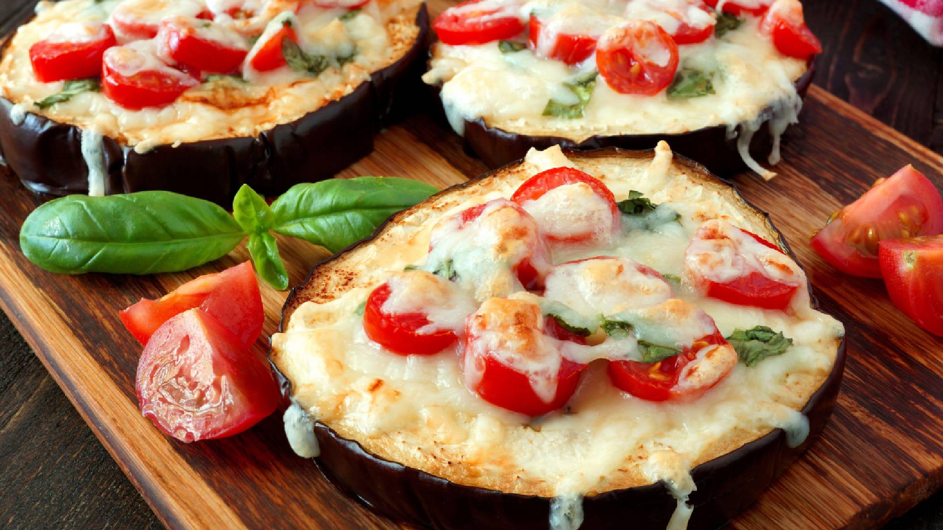 Кусочки баклажанов выложите на пергамент для выпечки, смажьте чесночным соусом и отправьте в разогретую до 200 градусов духовку на 15 минут. После этого достаньте противень, поместите на овощи кружочки помидоров и присыпьте сыром. Выпекайте до золотистой корочки, советует портал Steaklovers.