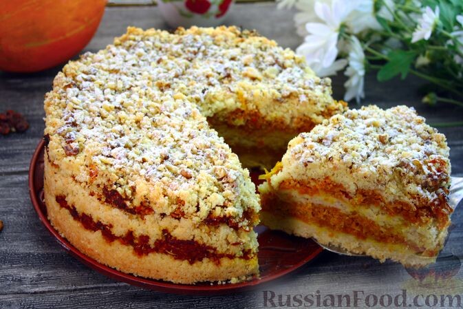 Этот пирог покорит сердца всех, кто попробует его. Основанный на простой рецептуре, он состоит из трех основных ингредиентов — муки, манки и сахара. Каждый из этих компонентов добавляется в форме слоев, создавая уникальную текстуру, которая прекрасно сочетается с нежной тыквенной начинкой. Готовится легко и быстро, а в конце посыпается грецкими орехами для особого украшения.