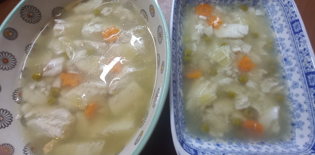 После варки рыбу аккуратно извлечь из бульона и освободить от костей и кожи, нарезая ломтиками. Затем, небольшое количество бульона остудить и растворить в нем желатин, после чего соединить с горячим бульоном, вторичного круга.