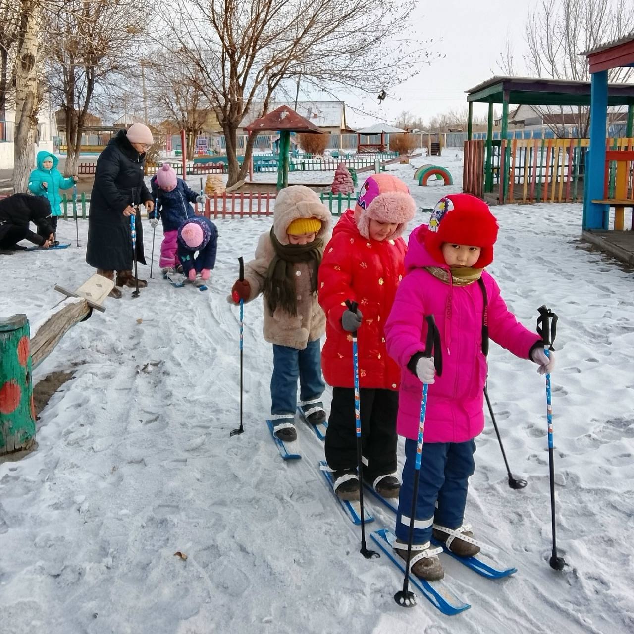 Башкылар спортту кышкы хевирлерин сайзыдарып, уругларны агы-агы хемчеглерже хаара тудуп турар.
