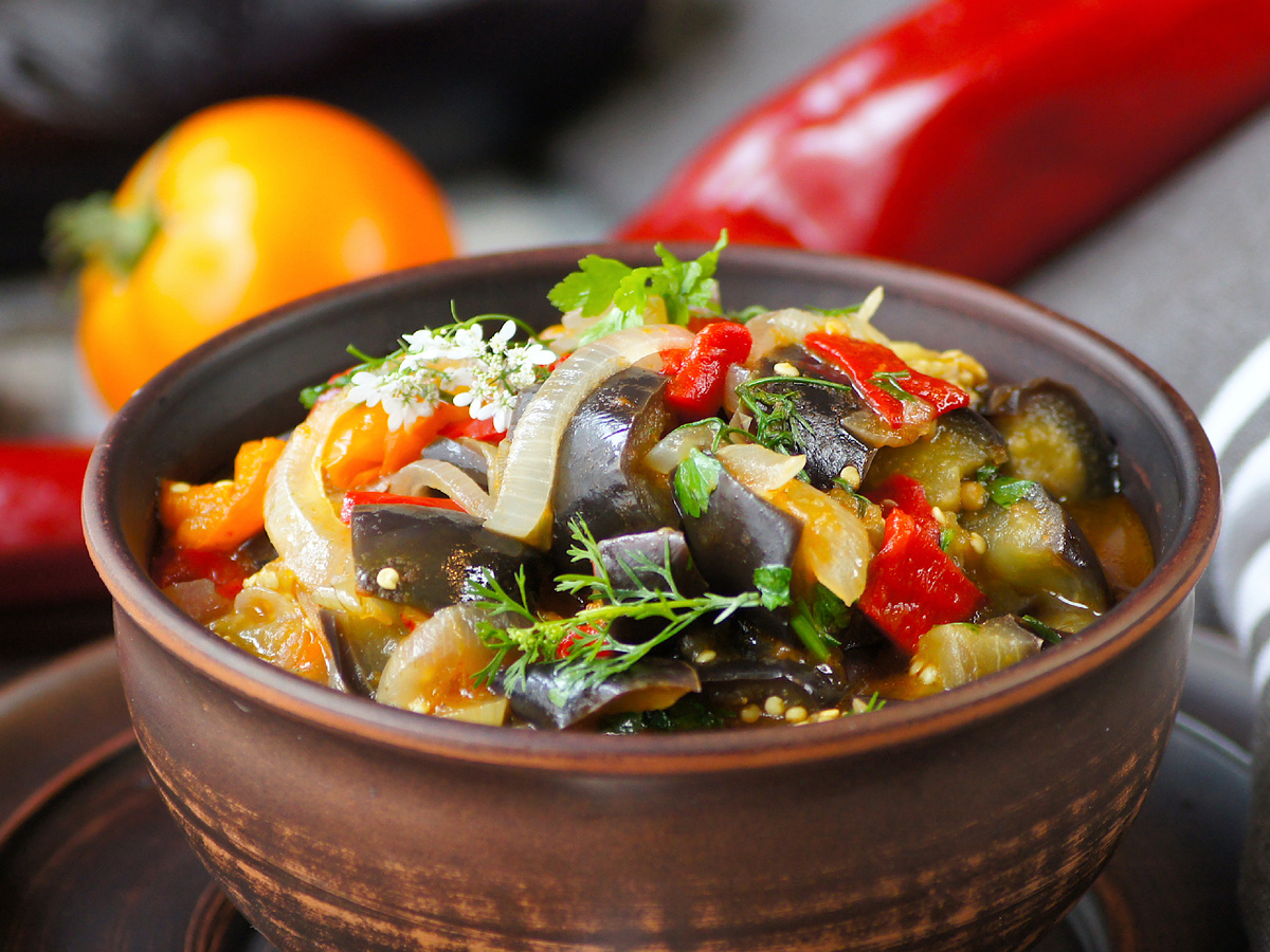 Это блюдо, основанное на сезонных овощах, чаще всего можно найти в избытке на даче. Оно отличается мягкой текстурой и насыщенным вкусом. Сочный густой сок, в котором готовятся овощи, сослужит хорошую службу, позволяя вымакивать хлебом каждую каплю. Причем его вкус удивительно комбинационный: с легкой кислинкой, сладостью и мягкими пряными нотами. Горячее блюдо подходит для обеда, а в холодном виде сможет стать отличной закуской, которую легко подать к мясу или просто так.