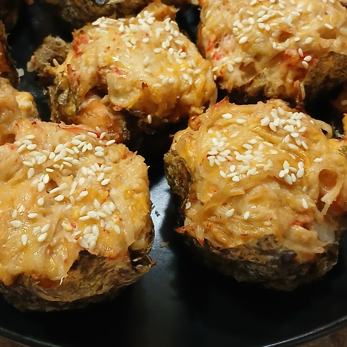 Лёгкая идея превращается в сытное блюдо: запечённые роллы с рыбой и снежным крабом становятся эффектным вечерним акцентом без лишних хлопот.