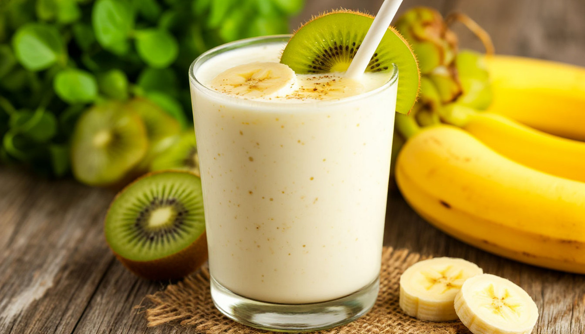 Чтобы напиток получился сбалансированным, достаточно соединить банан, киви и ванильное мороженое или йогурт, добавить молоко и чуть сладости по вкусу. Можно заморозить фрукты на пару минут для более густой текстуры, и тогда коктейль станет похож на гладкий десерт.