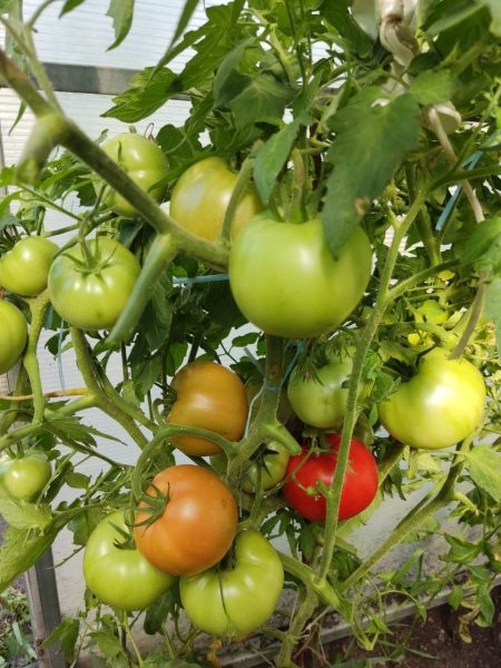 Плоды массой 200–300 г выглядят привлекательно и удобны для нарезки. Цвет ярко-красный, мякоть мясистая, с минимальным количеством семенных камер. Кожица плотная, что важно для товарности и транспортировки. Для свежего потребления и приготовления густых заготовок они подходят одинаково хорошо.