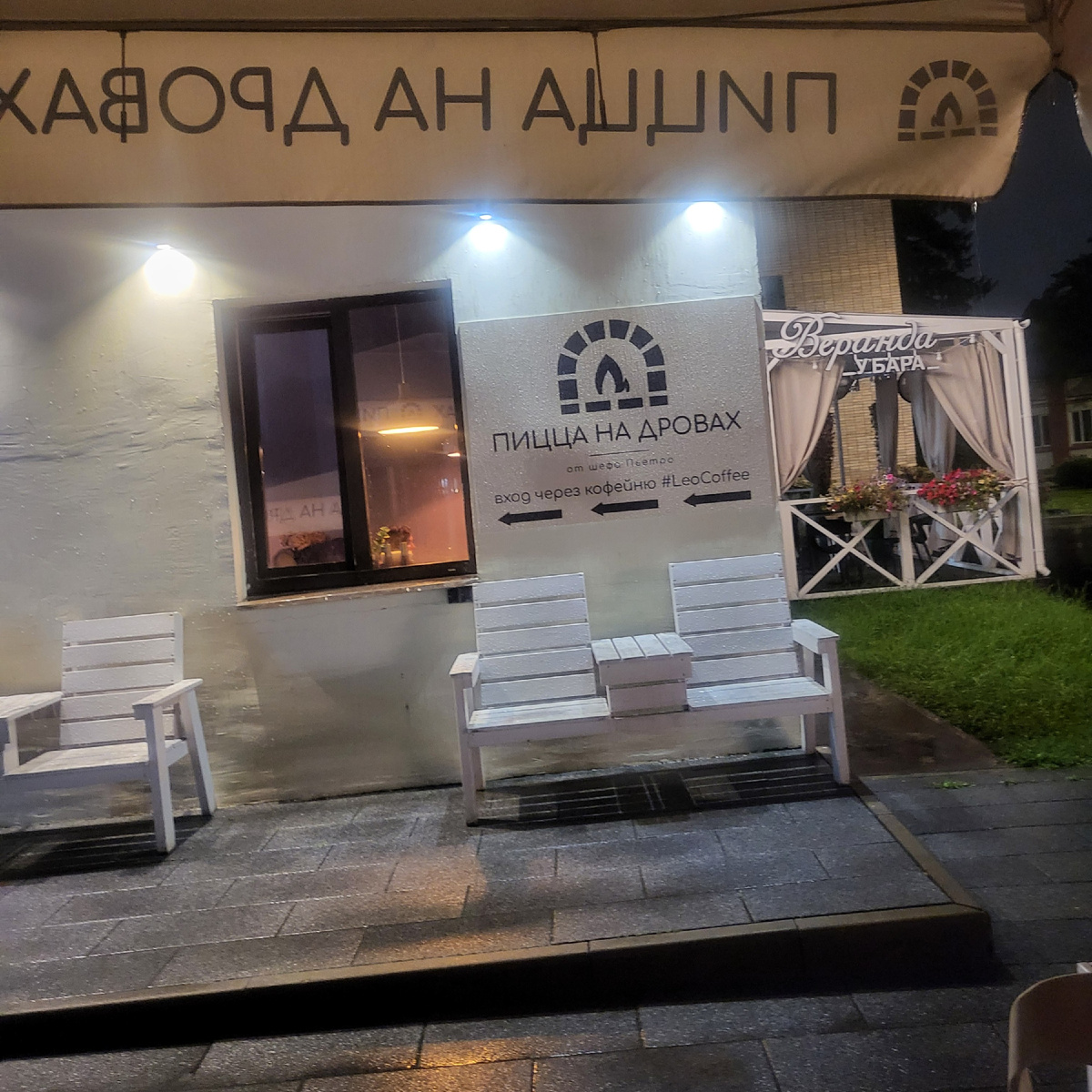 Пиццерия делит веранду с кофейней: зонты над столиками не протекают, а тёплая каменная печь расположена в дальнем зале. Винная карта ограничена в предложении значится в основном игристое не самого высокого уровня. Однако в дни фестивалей (например, Фестиваль Российского вина в ГЛАВВИНО) заметна практика приносить бокал фестивального вина с территории мероприятия вариант, который посетители активно используют.