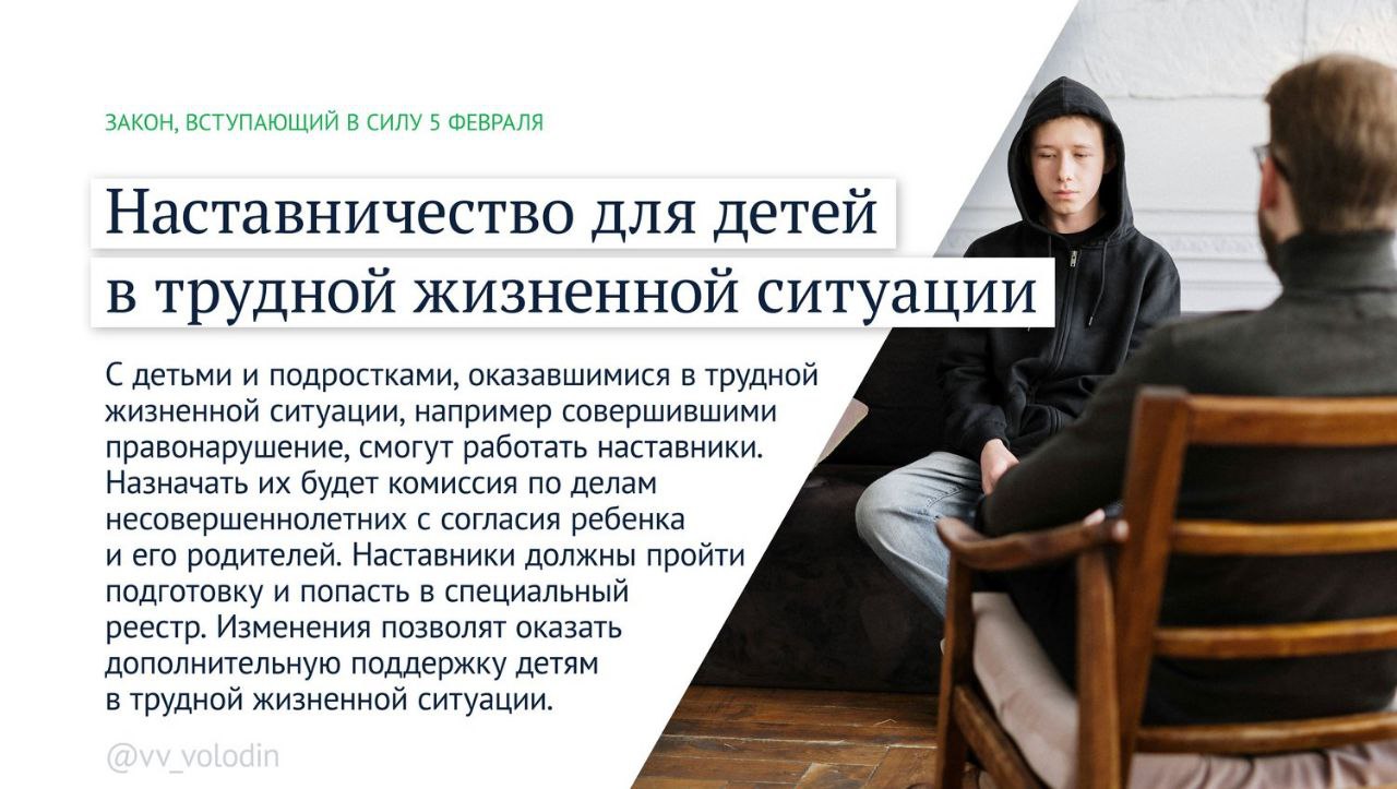 С 5 февраля в России вступают в силу новые законы, касающиеся конфискованного имущества, миграционного контроля, наставничества для подростков и поддержки креативных индустрий. Кроме того, с 1 февраля на 9,5% вырастут социальные выплаты, включая материнский капитал и страховые пенсии.