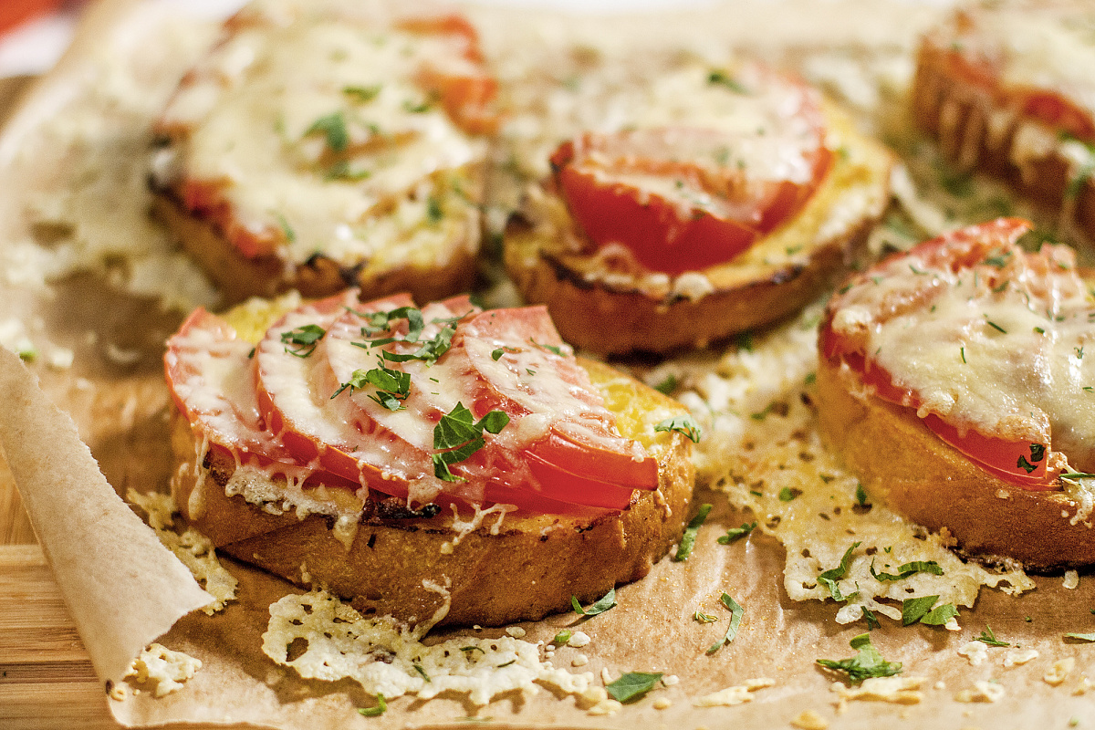 Разогрейте духовку до 200 градусов.В глубокой миске соедините яйцо с молоком, приправой карри и щепоткой соли. Хорошо взбейте венчиком до получения однородной массы.На сковороде разогрейте столовую ложку растительного масла.Ломтики хлеба обмакните в яичную смесь с обеих сторон и обжарьте на среднем огне по 2-3 минуты, пока они не станут золотистыми.Помидоры нарежьте полукольцами.Застелите противень пергаментом и выложите на него обжаренные гренки. Сверху разместите помидоры и посыпьте тертым сыром.Поставьте противень в предварительно разогретую духовку и запекайте 2-3 минуты, пока сыр не расплавится.Мелко порежьте петрушку и посыпьте ею гренки перед подачей.Подавайте горячими, наслаждаясь каждым кусочком. Приятного аппетита!