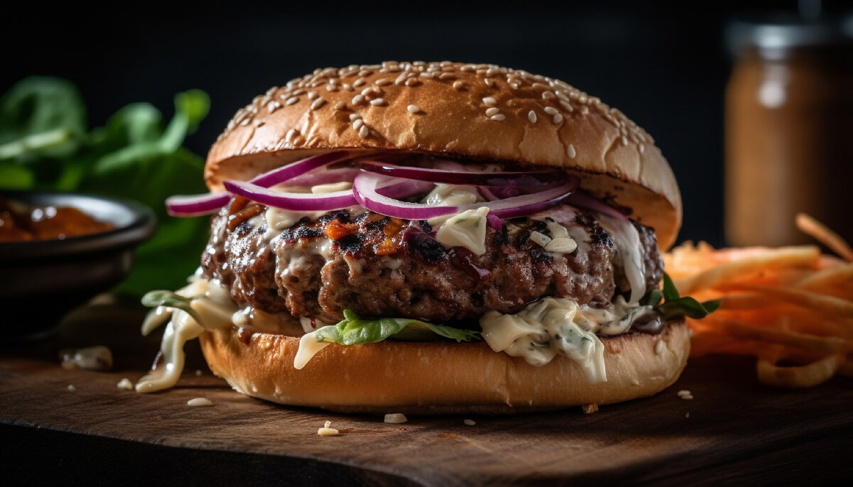 Этот бургер предлагает уникальную вкусовую палитру. Сочные кусочки ягненка, обжаренные до румяной корочки, воспринимаются как истинный деликатес. Мятный соус добавляет сладковатую свежесть, а карамелизированный лук вносит нотки сладости и утонченности. Пухлые булочки объединяют все эти элементы, создавая идеальное кулинарное творение, способное принести радость в любой момент. Пробуя этот бургер, можно ощутить симфонию вкусов, которая подарит настоящее кулинарное наслаждение.