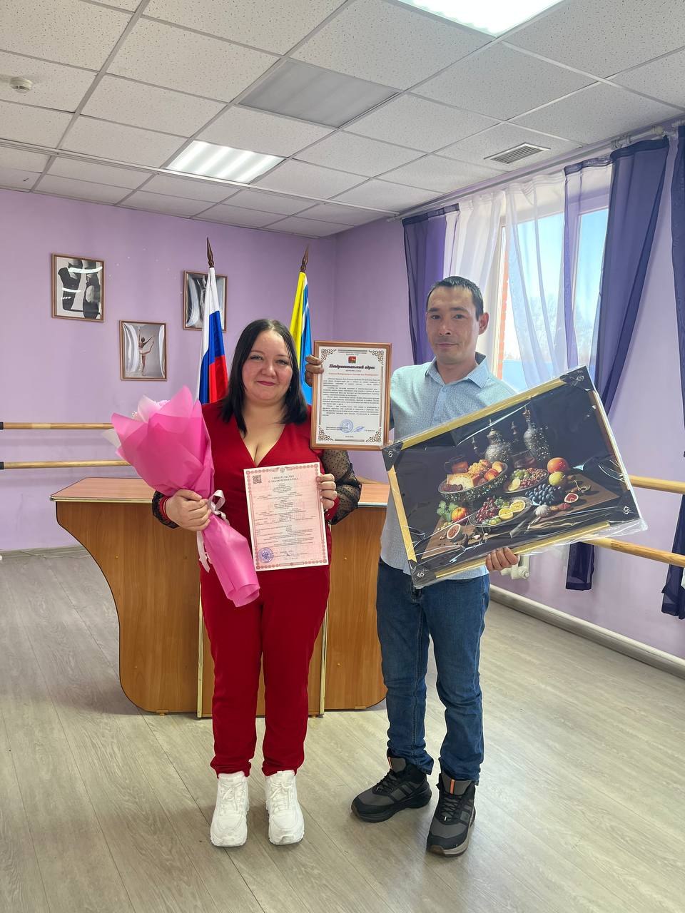 От имени министра юстиции республики молодожёны получили памятные подарки и поздравления.
