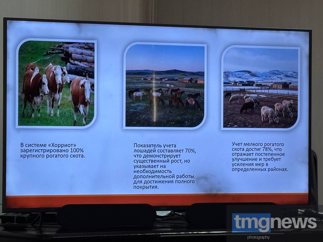 Всего по состоянию на 6 февраля в Туве насчитывается 177,3 тыс. голов крупного рогатого скота, 539,6 тыс. голов мелкого рогатого скота, 2,9 тыс. голов свиней и 723 голы домашней птицы, 70,2 тыс. голов лошадей. Основное поголовье сельскохозяйственных животных по всем категориям хозяйств, это 80% от всего поголовья в республике, содержатся в личных подсобных хозяйствах.