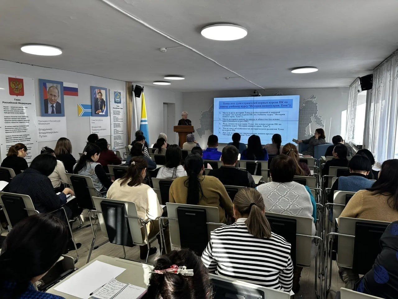 В рамках курсов, которые открыла начальник отдела общего образования Министерства образования РТ Светлана Монгуш, учителя истории школ республики углубленно изучали содержание нового учебника, методические подходы к преподаванию региональной истории и обсуждали эффективные формы работы для формирования интереса школьников к историко-культурному наследию Тувы.
