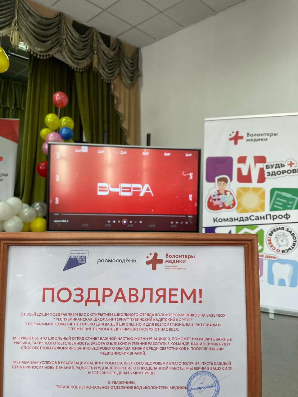 Тувинское региональное отделение Всероссийского общественного движения «Волонтёры-медики» открыло школьный отряд на базе Республиканской школы-интерната «Тувинский кадетский корпус».