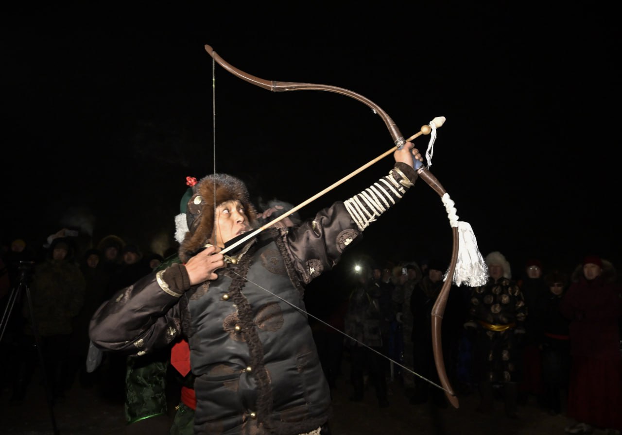 Модератор действия, Народный хоомейжи Республики Тыва Андрей Монгуш, рассказал всем присутствующим, о значении ритуала. Считается, что выпущенные из лука стрелы обладают очистительной силой, они уносят с собой все плохое из прошлого года, повышают силу духа у мужчин.
