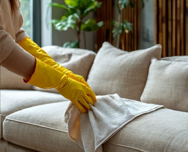 Тканевые диваны: подходят большинство народных средств (соль, сода, перекись). Главное — избегать избытка воды.