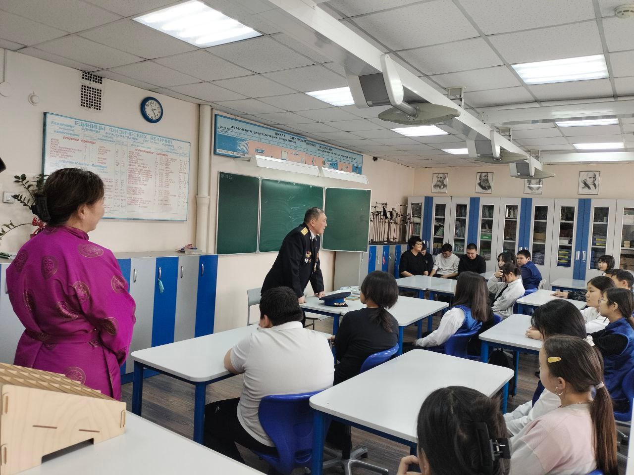 Почетным гостем мероприятия стал ветеран военной службы, полковник ФСБ в отставке, писатель и член Союза писателей Тувы Александр Ондар. Он поделился со школьниками воспоминаниями о годах службы и специфике работы в органах безопасности.