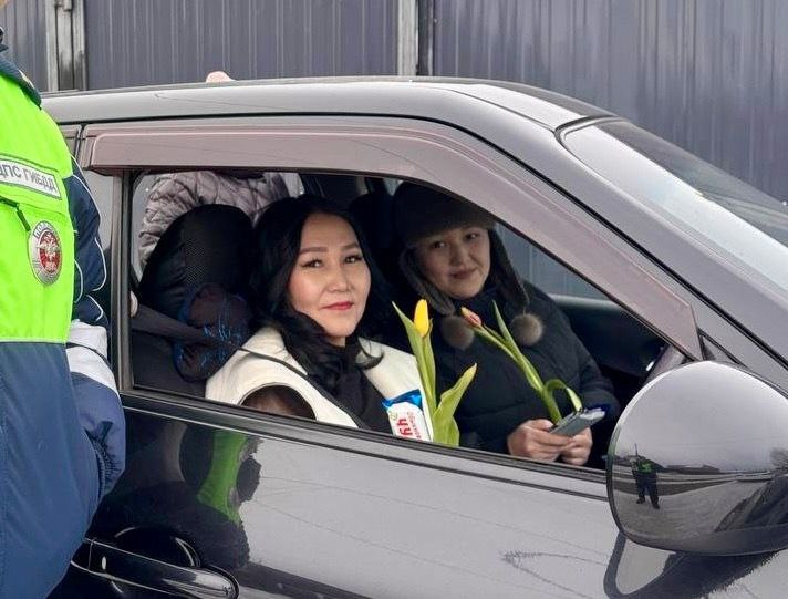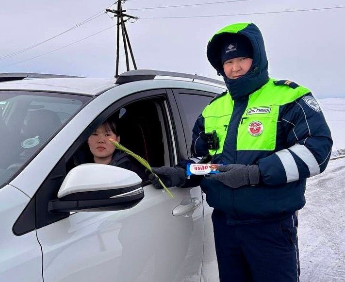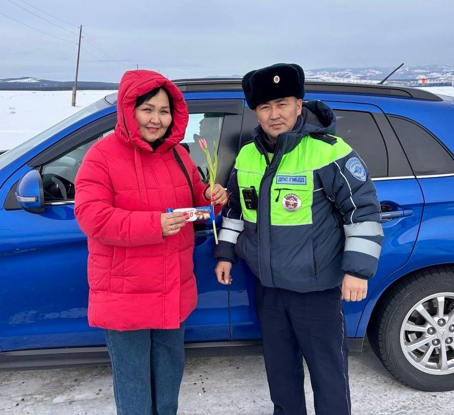 В Туве сотрудники Госавтоинспекции поздравили женщин-водителей с 8 Марта