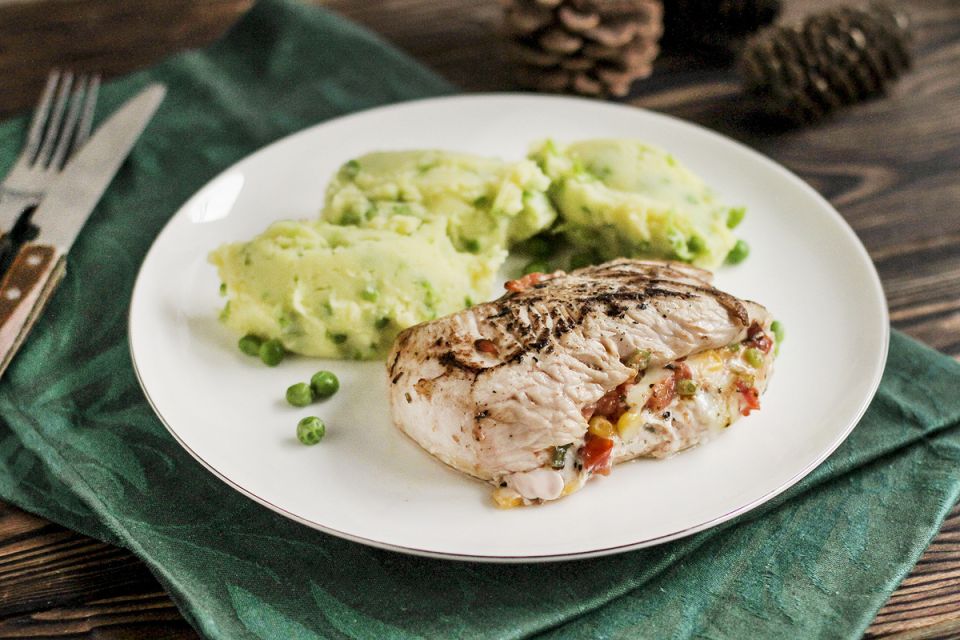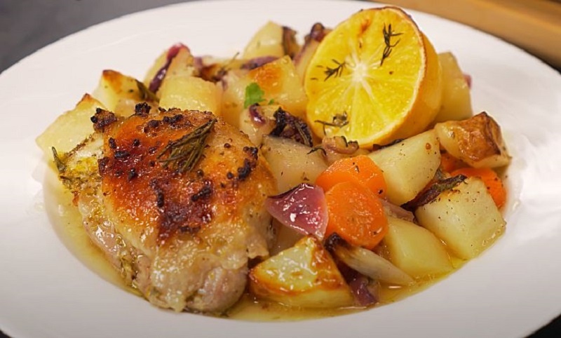 После того, как курица замаринована, ее выкладывают в форму для запекания с нарезанными овощами, созданными с сочной пряной заправкой. Запечённое мясо отражает гармоничное сочетание вкуса: курица остаётся сочной, а овощи приобретают идеальную текстуру, впитывая всю гамму ароматов.