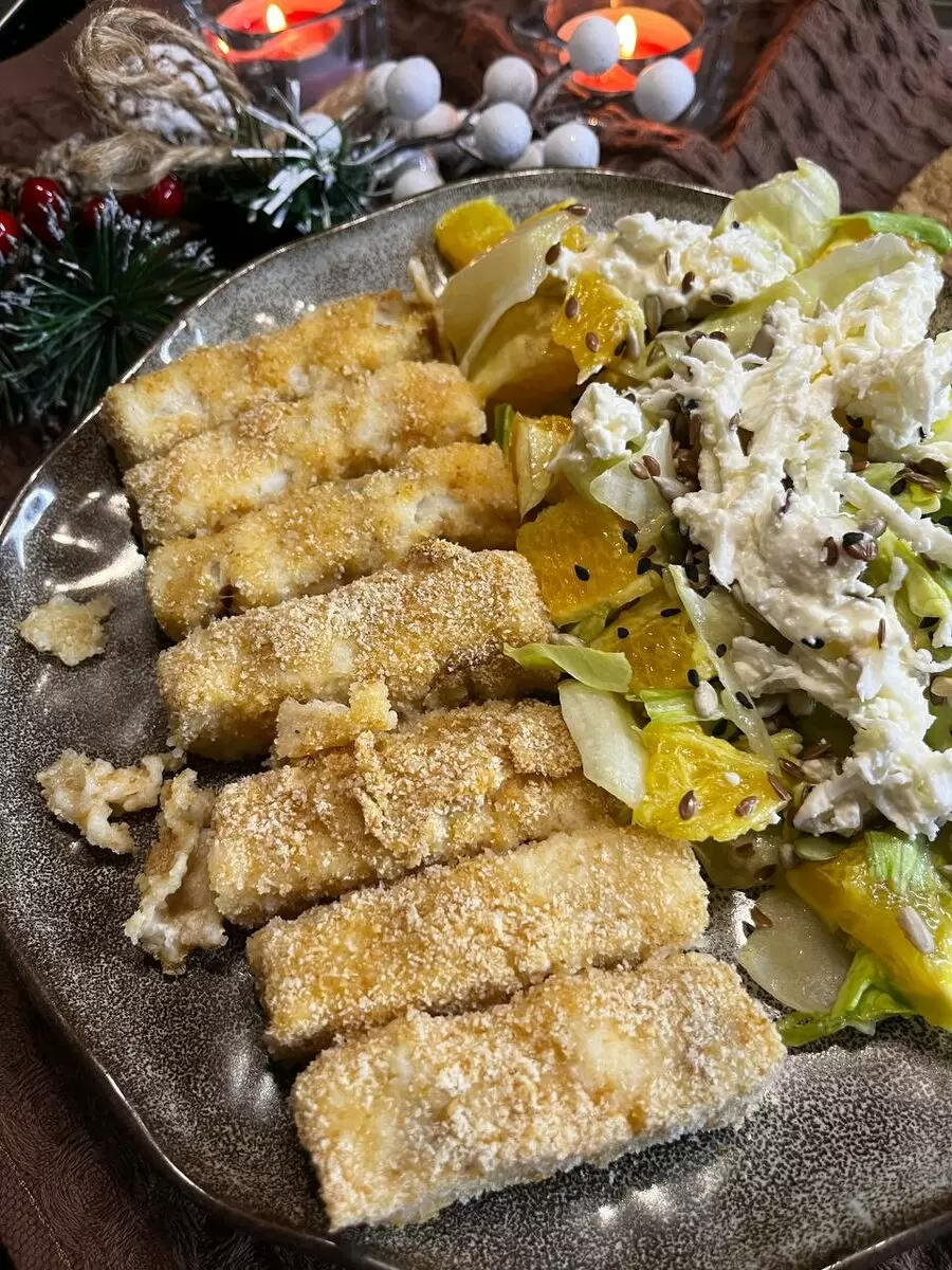 Секрет удачного блюда — минимальный набор ингредиентов и понятная технология: филе нарезать длинными палочками, обмакнуть в яйце и панировочных сухарях, запечь до хрустящей золотистости.