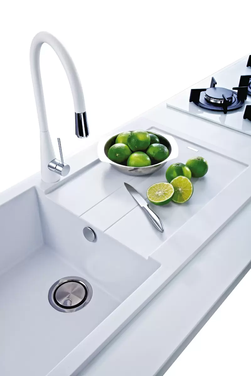 - Легкость в уходе: Гладкая, непористая поверхность акрила не задерживает грязь, жир и микробы, что делает уход за мойкой простым и быстрым.