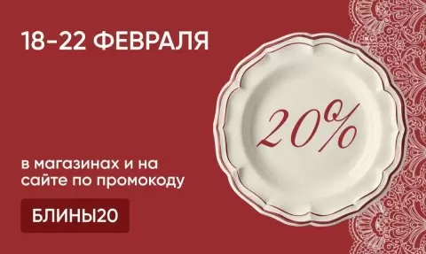 - Используйте промокод БЛИНЫ20 при оформлении заказа на сайте или озвучьте его на кассе в магазинах.