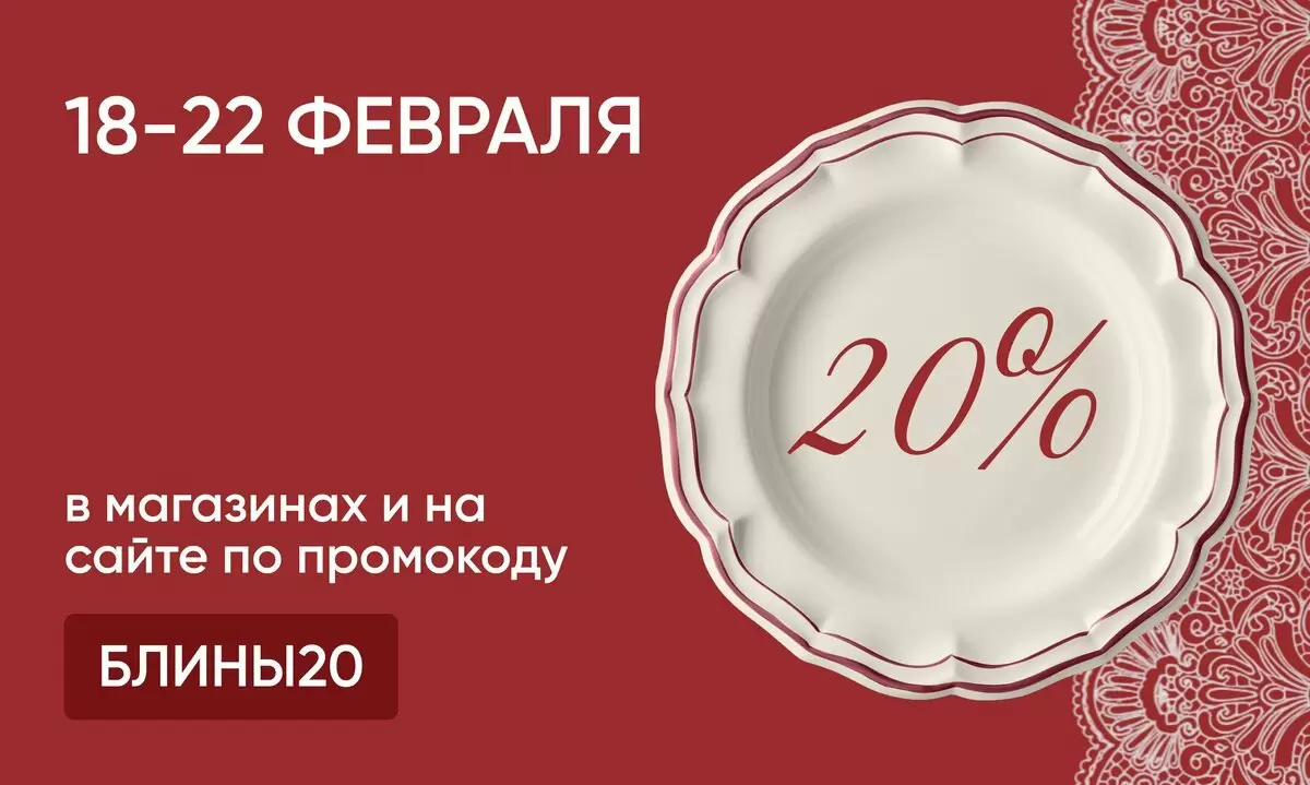 В честь праздника объявлены долгожданные скидочные дни! С 18 по 22 февраля у вас есть возможность обновить свою посуду и сделать завтраки во время Масленицы по-настоящему незабываемыми.