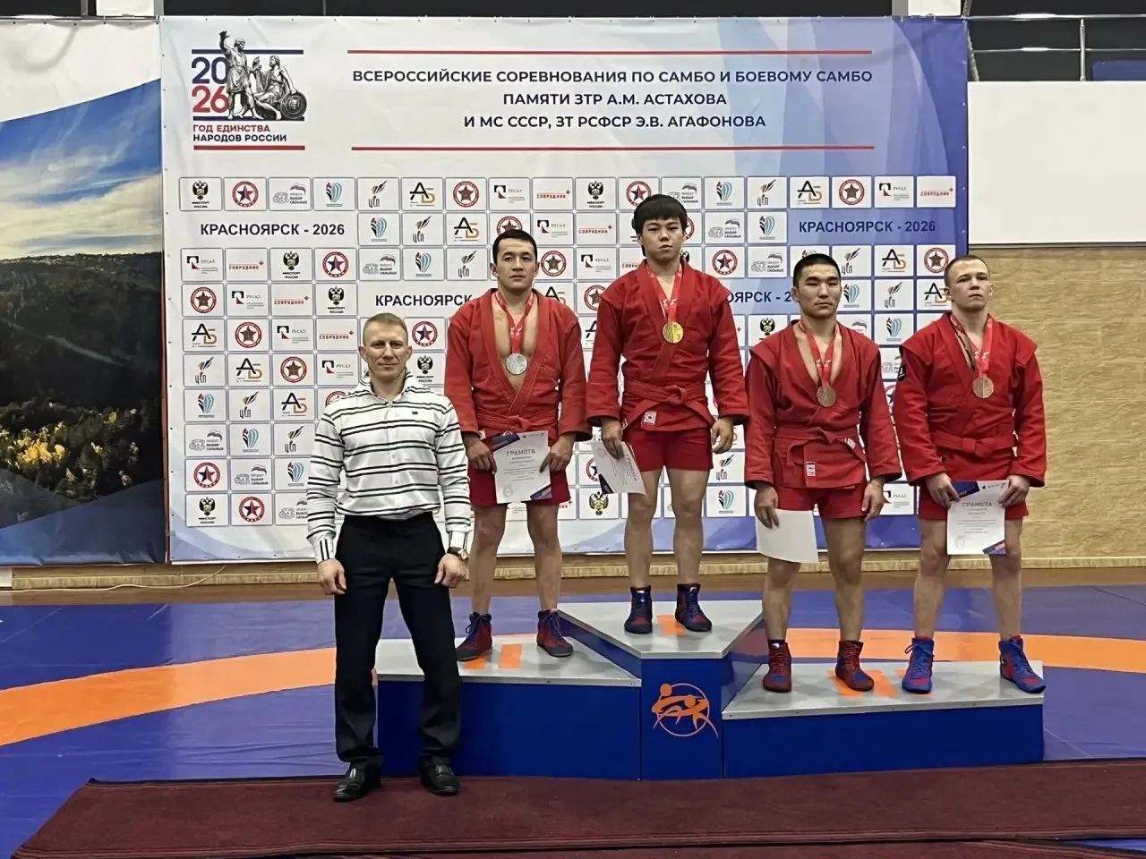 В Красноярске завершились Всероссийские соревнования по самбо памяти заслуженного тренера России, мастера спорта международного класса Э.В. Агафонова и заслуженного тренера РСФСР А.М. Астахова. Представители Республики Тыва показали впечатляющий результат, завоевав четыре золотые медали и одну бронзовую.
